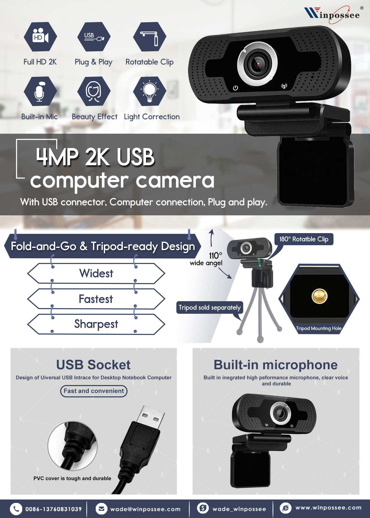4MP 2K USB computer camera
