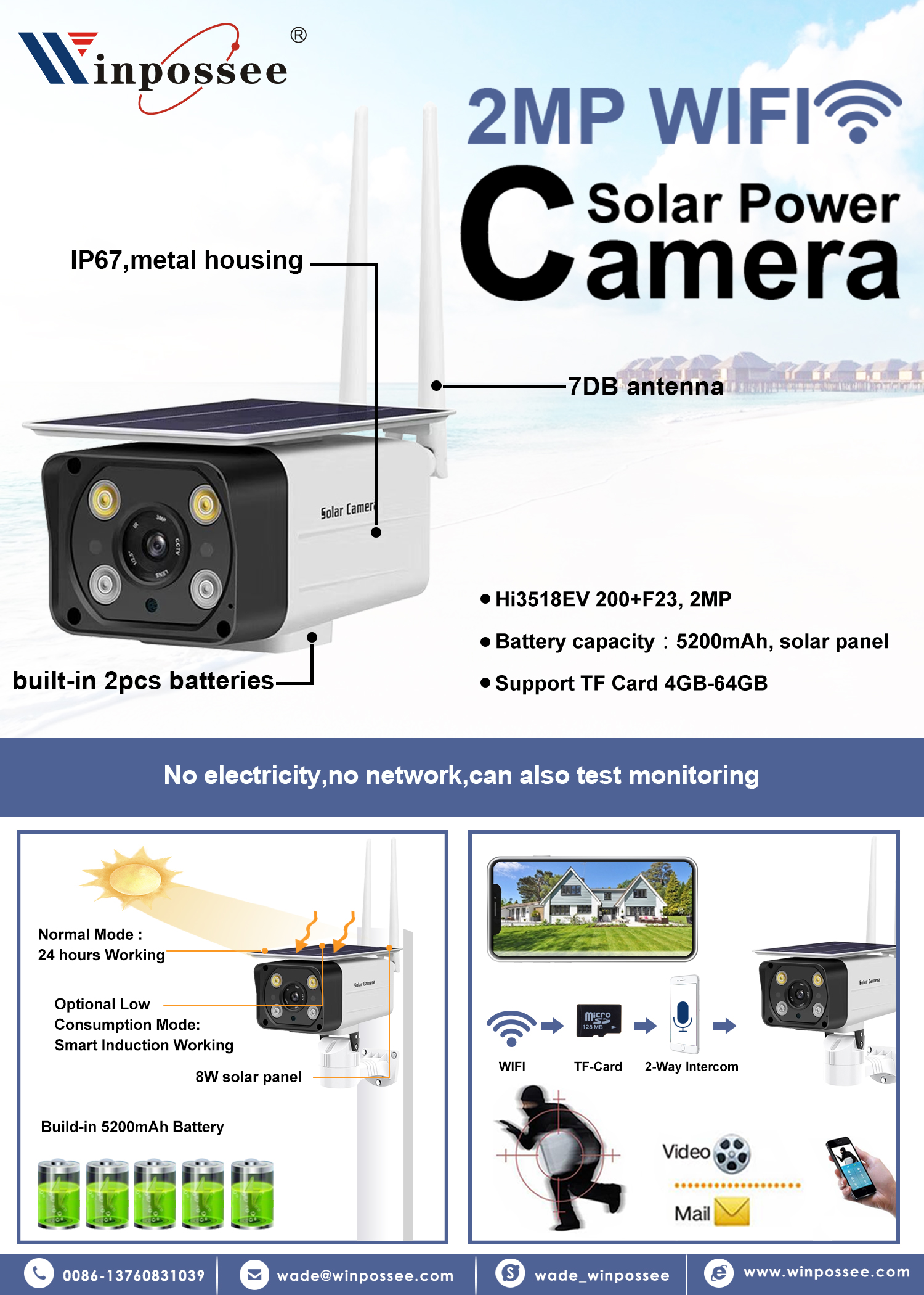 2MP WIFI solar power Camera